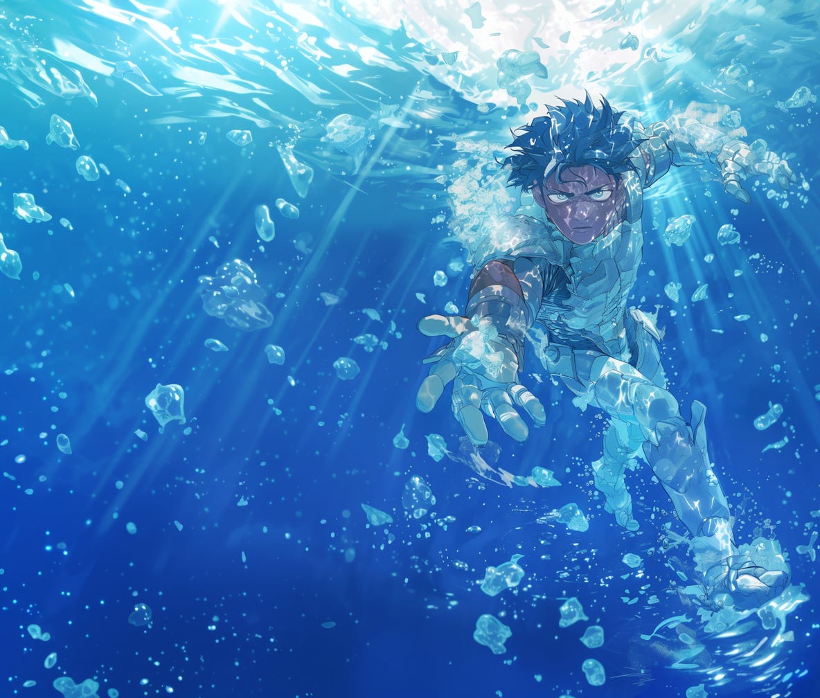 Another instant and the surface of the lead lake had shattered, pierced by prismatic shards of ice the size of mountains. Sulfur barely had time to clock his green and blue eyes before his hands were on his throat. Oxygen's momentum brought them hurtling towards the surface of the water, smashing through.